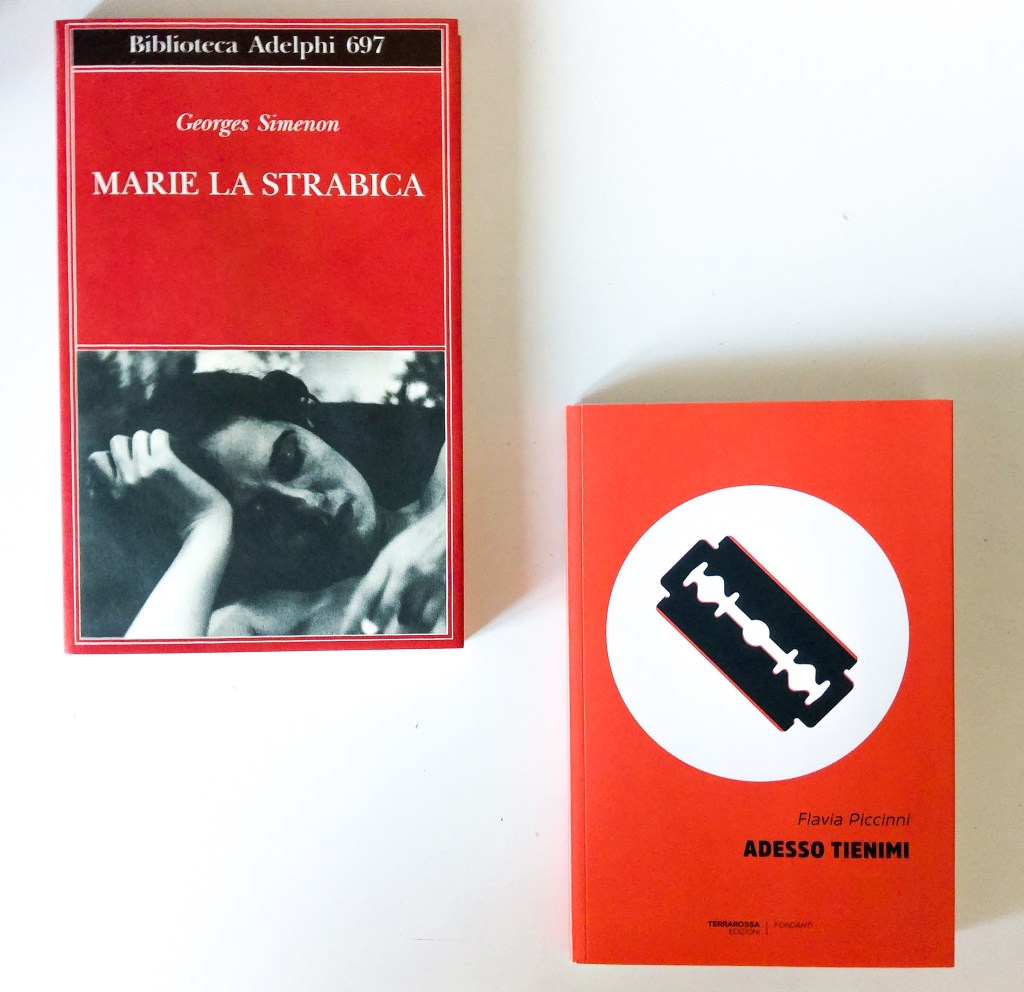 Il mese di febbraio è un trionfo di rosso. Come il fuoco delle protagoniste dei romanzi che ho letto, Marie la strabica di Simenon (Adelphi) e Adesso tienimi di Flavia Piccinni (Terrarossa).